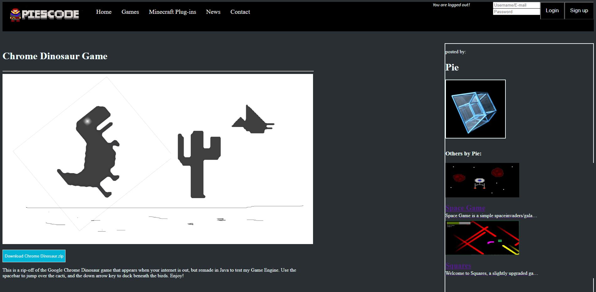 This is the place where I will be uploading the games I make. Currently, accounts cannot do much of anything, as only admin accounts can upload anything. Soon, commenting will be added alongside with the allowance of users to post games made in Unity (at least hopefully). Thank you for stopping by the site! -Pie